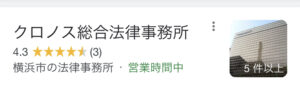はじめにGoogleでクロノス総合法律事務所さんの口コミと評判を調べてみました。
