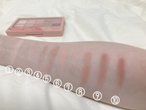 組み合わせ次第で色んなアイメイクが楽しめるのは、10色入っているこのパレットならではの魅力だと思いました♪発色も良く、気になる粉飛びもなく使用できたので、今まさにアイシャドウパレットが欲しい人はぜひチェックしてみてくださいね!